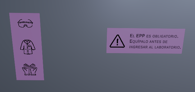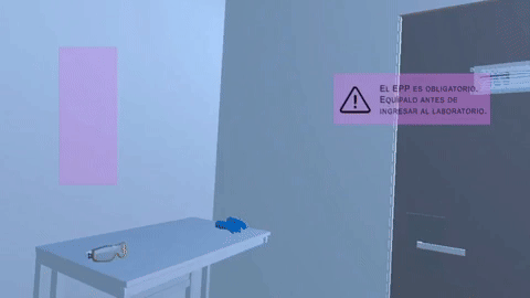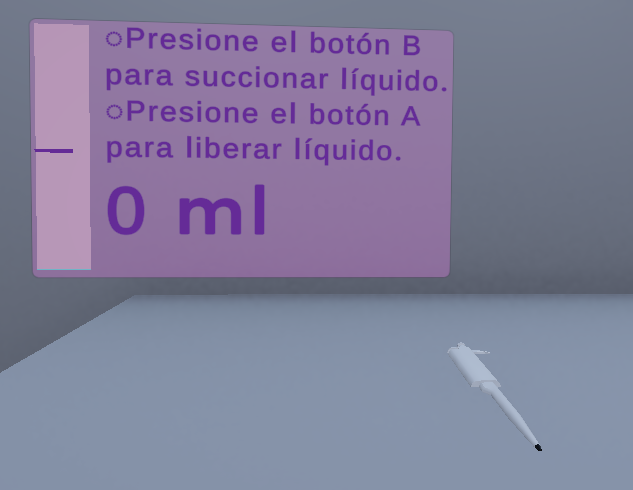 Cada objeto interactuable que lo requiera cuenta con una interfaz demostrativa que muestra información relevante del procedimiento al usuario.