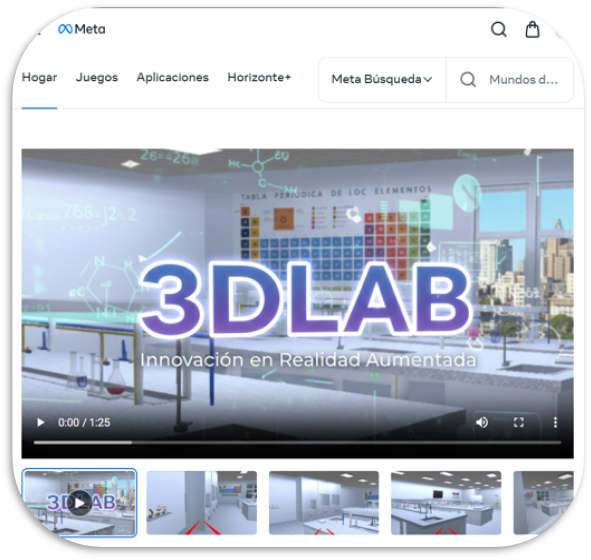3Dlab está listo para mostrarse al mundo y ser descargado en un dispositivo Oculus. Actualmente, nos encontramos en el MarketPlace oficial de Meta.